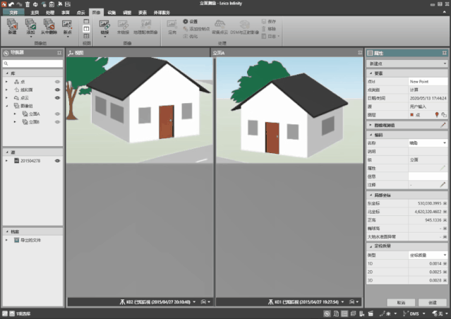 影像測量相對簡單,我們不需要超高配置的電腦支撐點(diǎn)云引擎,也無需其他預(yù)處理工作,只需要點(diǎn)擊兩站影像同名點(diǎn),便可以完成3D坐標(biāo)采集,徠卡Infinity也提供了基本的繪圖功能,幫我們完成立面圖的初步繪制。